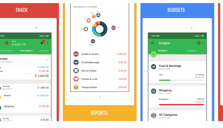 ഞാൻ 1 വർഷത്തോളം ഉപയോഗിച്ച ഒരു പ്ലാറ്റ്ഫോം ആണ്.ഇതിൽ നിങ്ങളുടെ വരുമാനവും ചിലവുകളും രേഖപെടുത്താം.ബഡ്ജറ്റ് സെറ്റ് ചെയ്യാം.ഇതെല്ലാം ഗ്രാഫിക്കല് രൂപത്തിൽ കണ്ടു മനസിലാക്കാം,കമ്പ്യൂട്ടറിൽ ആക്സസ് ചെയ്യാം അങ്ങനെ നിരവധി ഓപ്‌ഷനുകൾ ഈ ആപ്പിൽ ഉണ്ട്.ഈ ആപ്പിൽ ലഭ്യമായ മറ്റു ഫീച്ചറുകൾ താഴെ നൽകുന്നു.